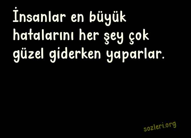 İnsanlar en büyük hatalarını her şey çok güzel giderken yaparlar. ( Büyük Sözler )