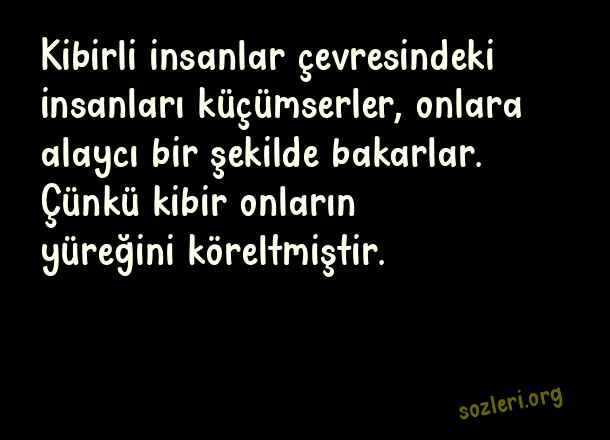Kibirli insanlar çevresindeki insanları küçümserler, onlara alaycı bir şekilde bakarlar. Çünkü kibir onların yüreğini köreltmiştir. ( Kendini Büyük Görmek )