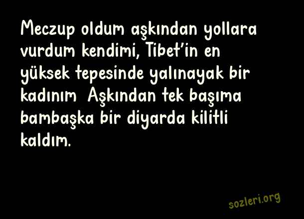 Meczup oldum aşkından yollara vurdum kendimi, Tibet’in en yüksek tepesinde yalınayak bir kadınım… Aşkından tek başıma bambaşka bir diyarda kilitli kaldım. ( Büyük Aşk )