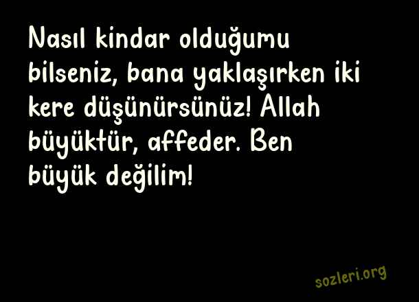 Nasıl kindar olduğumu bilseniz, bana yaklaşırken iki kere düşünürsünüz! Allah büyüktür, affeder. Ben büyük değilim! ( Allah Büyük )