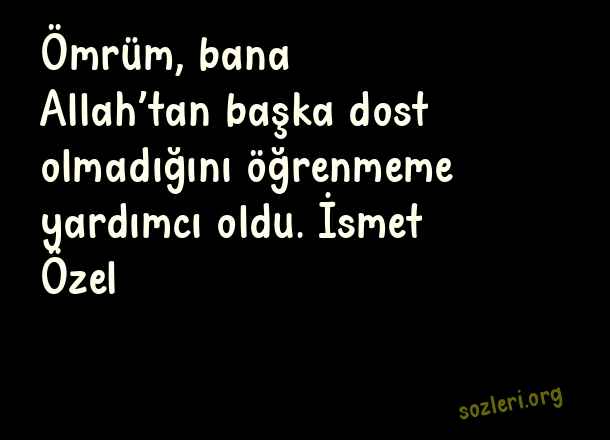 Ömrüm, bana Allah’tan başka dost olmadığını öğrenmeme yardımcı oldu. İsmet Özel ( Allah Büyük )