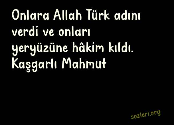 Onlara Allah Türk adını verdi ve onları yeryüzüne hâkim kıldı. Kaşgarlı Mahmut ( Türk Büyüklerinin )