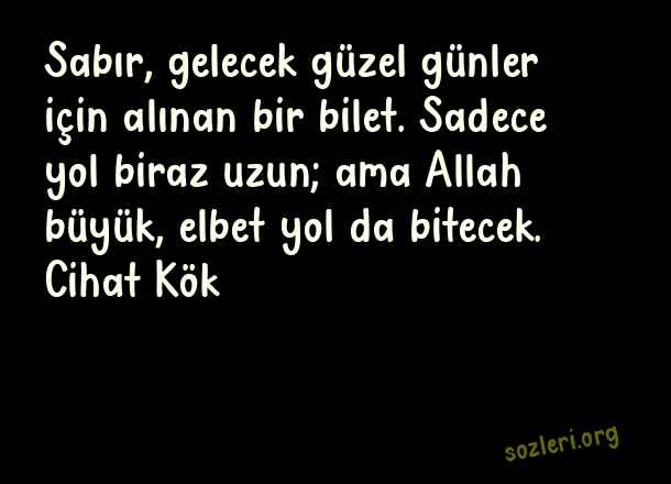 Sabır, gelecek güzel günler için alınan bir bilet. Sadece yol biraz uzun; ama Allah büyük, elbet yol da bitecek. Cihat Kök ( Allah Büyük )