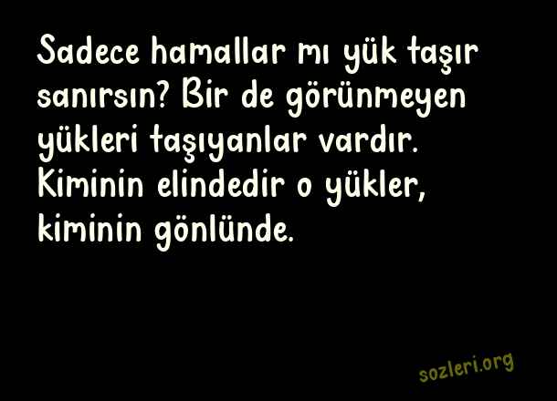 Sadece hamallar mı yük taşır sanırsın? Bir de görünmeyen yükleri taşıyanlar vardır. Kiminin elindedir o yükler, kiminin gönlünde. ( Yük )