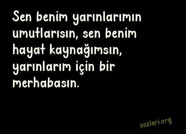 Sen benim yarınlarımın umutlarısın, sen benim hayat kaynağımsın, yarınlarım için bir merhabasın. ( Büyük Aşk )
