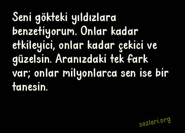 Seni gökteki yıldızlara benzetiyorum. Onlar kadar etkileyici, onlar kadar çekici ve güzelsin. Aranızdaki tek fark var; onlar milyonlarca sen ise bir tanesin. ( Büyük Aşk )
