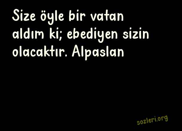 Size öyle bir vatan aldım ki; ebediyen sizin olacaktır. Alpaslan ( Türk Büyüklerinin )