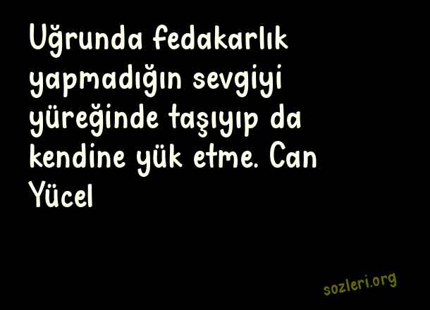 Uğrunda fedakarlık yapmadığın sevgiyi yüreğinde taşıyıp da kendine yük etme. Can Yücel ( Yük )