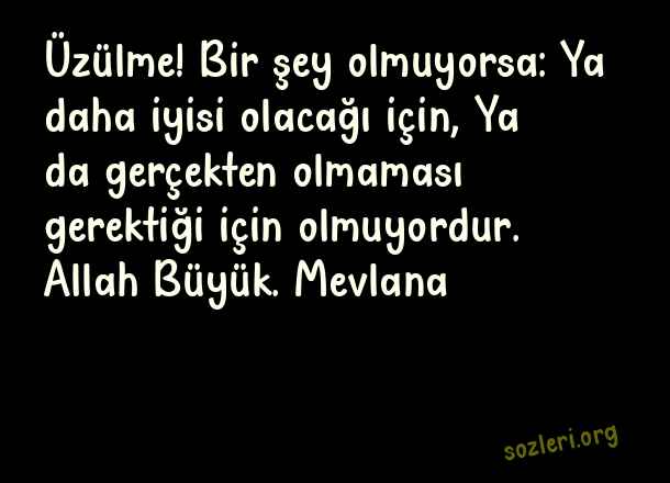 Üzülme! Bir şey olmuyorsa: Ya daha iyisi olacağı için, Ya da gerçekten olmaması gerektiği için olmuyordur. Allah Büyük. Mevlana ( Allah Büyük )