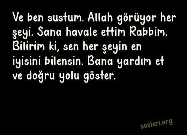 Ve ben sustum. Allah görüyor her şeyi. Sana havale ettim Rabbim. Bilirim ki, sen her şeyin en iyisini bilensin. Bana yardım et ve doğru yolu göster. ( Allah Büyük )