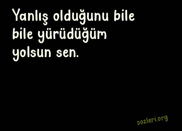 Yanlış olduğunu bile bile yürüdüğüm yolsun sen. ( Büyük Aşk )