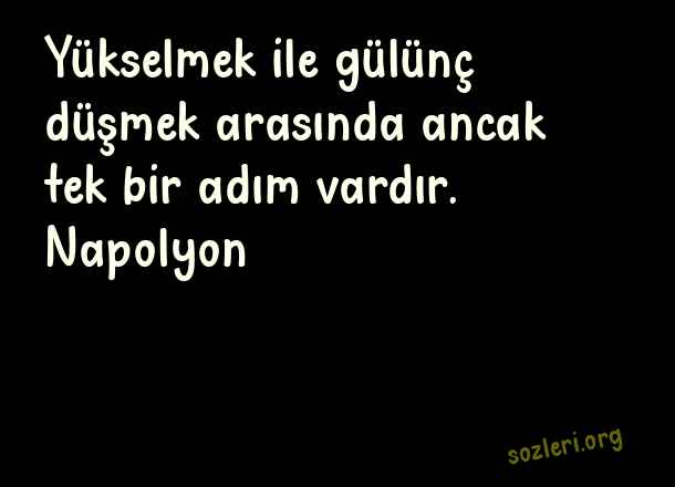 Yükselmek ile gülünç düşmek arasında ancak tek bir adım vardır. Napolyon ( Yükselmek )