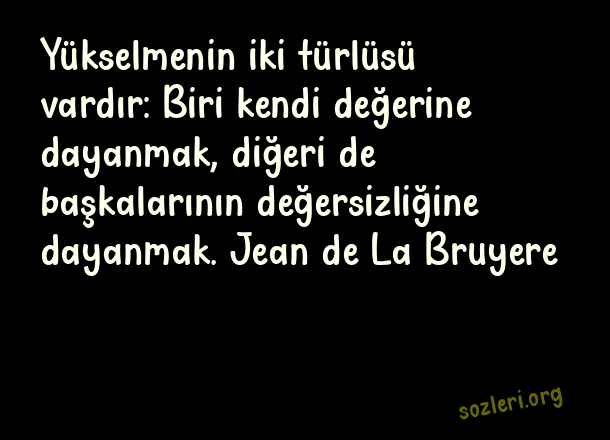 Yükselmenin iki türlüsü vardır: Biri kendi değerine dayanmak, diğeri de başkalarının değersizliğine dayanmak. Jean de La Bruyere ( Yükselmek )