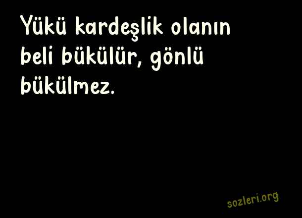 Yükü kardeşlik olanın beli bükülür, gönlü bükülmez. ( Yük )