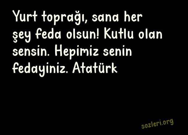 Yurt toprağı, sana her şey feda olsun! Kutlu olan sensin. Hepimiz senin fedayiniz. Atatürk ( Türk Büyüklerinin )