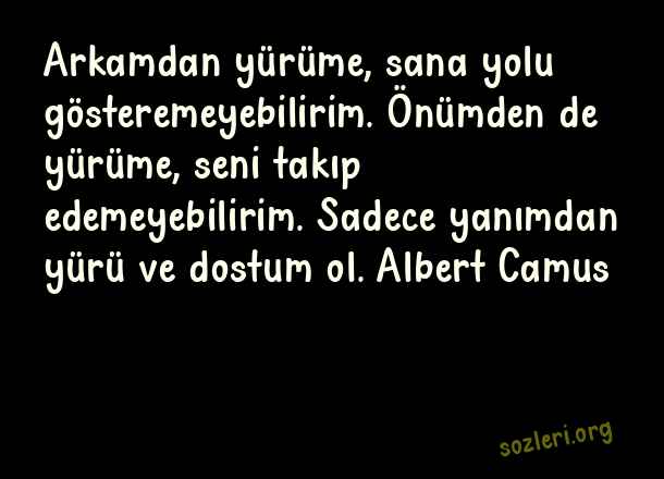 Arkamdan yürüme, sana yolu gösteremeyebilirim. Önümden de yürüme, seni takıp edemeyebilirim. Sadece yanımdan yürü ve dostum ol. Albert Camus ( Yürümek )