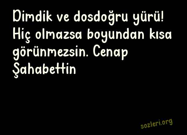 Dimdik ve dosdoğru yürü! Hiç olmazsa boyundan kısa görünmezsin. Cenap Şahabettin ( Yürümek )