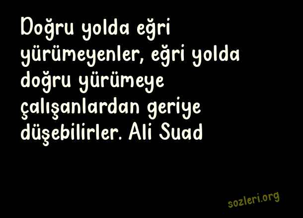 Doğru yolda eğri yürümeyenler, eğri yolda doğru yürümeye çalışanlardan geriye düşebilirler. Ali Suad ( Yürümek )