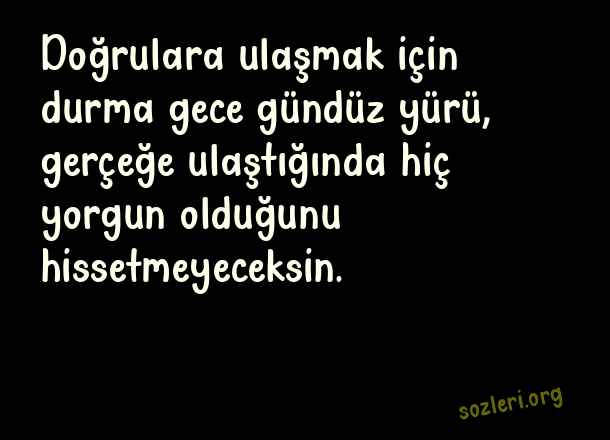 Doğrulara ulaşmak için durma gece gündüz yürü, gerçeğe ulaştığında hiç yorgun olduğunu hissetmeyeceksin. ( Yürümek )
