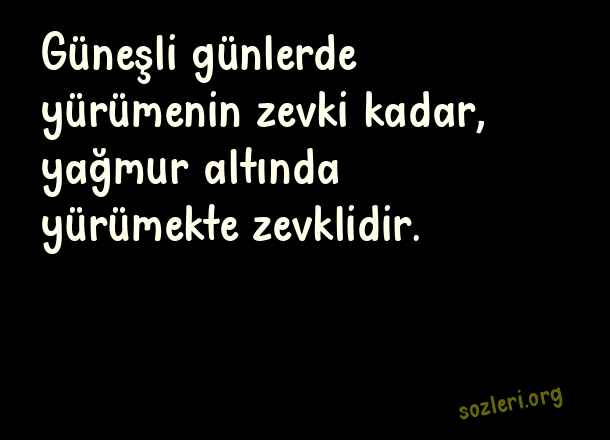 Güneşli günlerde yürümenin zevki kadar, yağmur altında yürümekte zevklidir. ( Yürümek )