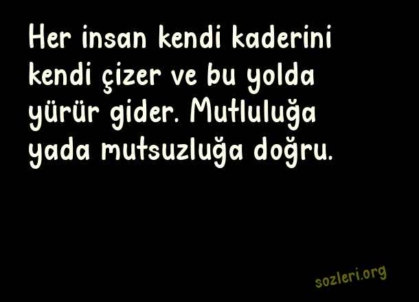 Her insan kendi kaderini kendi çizer ve bu yolda yürür gider. Mutluluğa yada mutsuzluğa doğru. ( Yürümek )