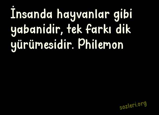 İnsanda hayvanlar gibi yabanidir, tek farkı dik yürümesidir. Philemon ( Yürümek )