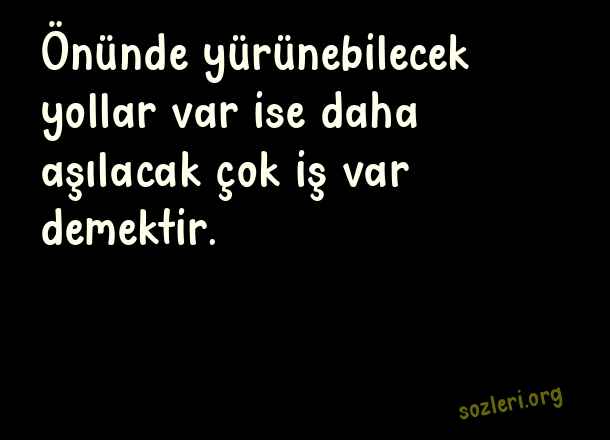 Önünde yürünebilecek yollar var ise daha aşılacak çok iş var demektir. ( Yürümek )