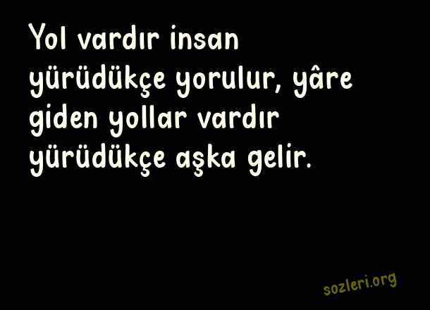 Yol vardır insan - Yürümek İle İlgili Sözler .. Yol vardır insan yürüdükçe yorulur, yâre giden yollar vardır yürüdükçe aşka gelir. ( Yürümek )