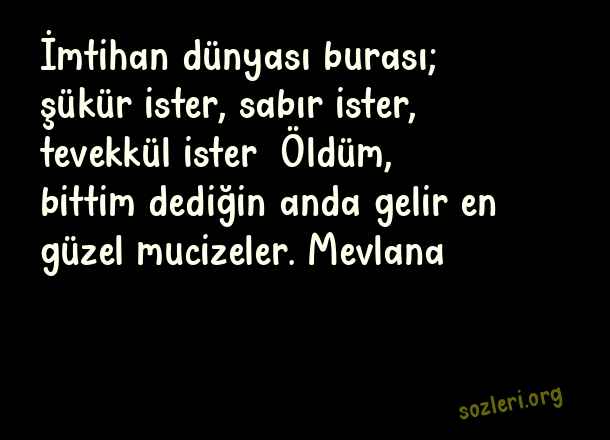 İmtihan dünyası burası; şükür ister, sabır ister, tevekkül ister… Öldüm, bittim dediğin anda gelir en güzel mucizeler. Mevlana ( Zalim Dünya )