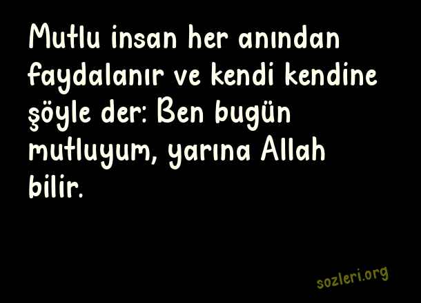 Mutlu insan her anından faydalanır ve kendi kendine şöyle der: Ben bugün mutluyum, yarına Allah bilir. ( Zaman İle İlgili Güzel Sözler )