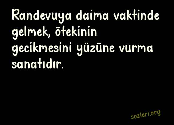 Randevuya daima vaktinde gelmek, ötekinin gecikmesini yüzüne vurma sanatıdır. ( Zaman İle İlgili Güzel Sözler )
