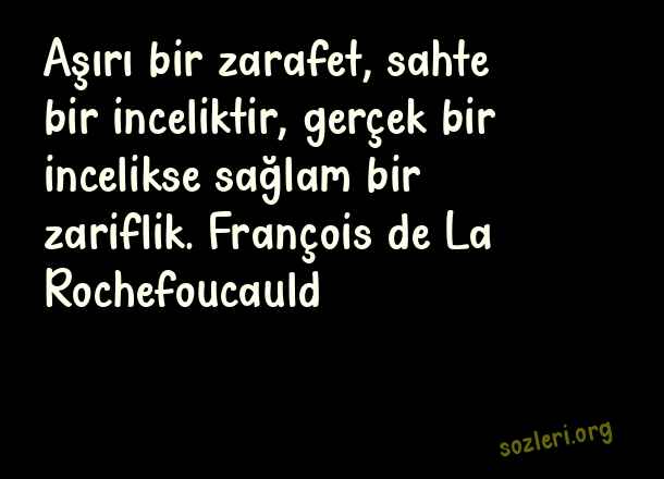Aşırı bir zarafet, sahte bir inceliktir, gerçek bir incelikse sağlam bir zariflik. François de La Rochefoucauld ( Zarafet )