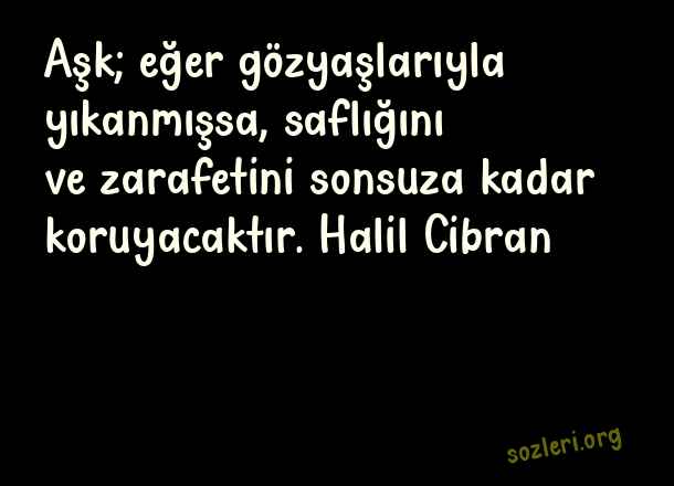 Aşk; eğer gözyaşlarıyla yıkanmışsa, saflığını ve zarafetini sonsuza kadar koruyacaktır. Halil Cibran ( Zarafet )