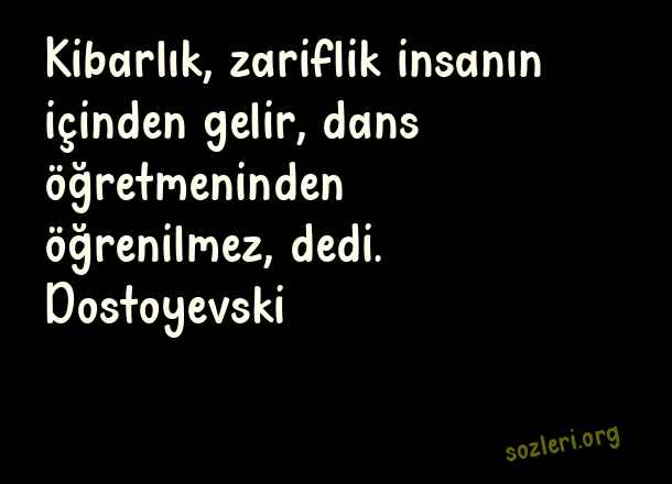 Kibarlık, zariflik insanın içinden gelir, dans öğretmeninden öğrenilmez, dedi. Dostoyevski ( Zarafet )