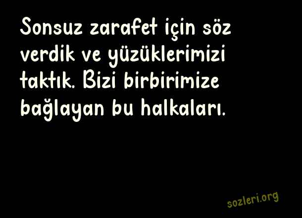 Sonsuz zarafet için söz verdik ve yüzüklerimizi taktık. Bizi birbirimize bağlayan bu halkaları. ( Zarafet )