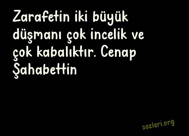 Zarafetin iki büyük düşmanı çok incelik ve çok kabalıktır. Cenap Şahabettin ( Zarafet )
