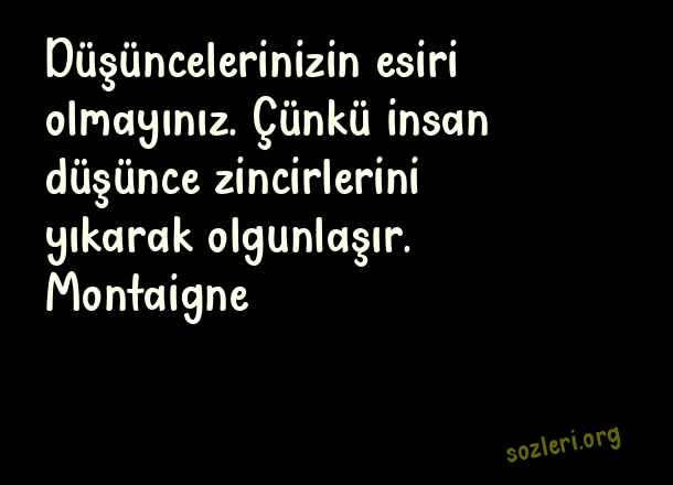 Düşüncelerinizin esiri olmayınız. Çünkü insan düşünce zincirlerini yıkarak olgunlaşır. Montaigne ( Zincirleri Kırmak )