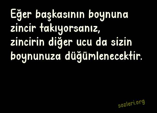 Eğer başkasının boynuna zincir takıyorsanız, zincirin diğer ucu da sizin boynunuza düğümlenecektir. ( Zincirleri Kırmak )