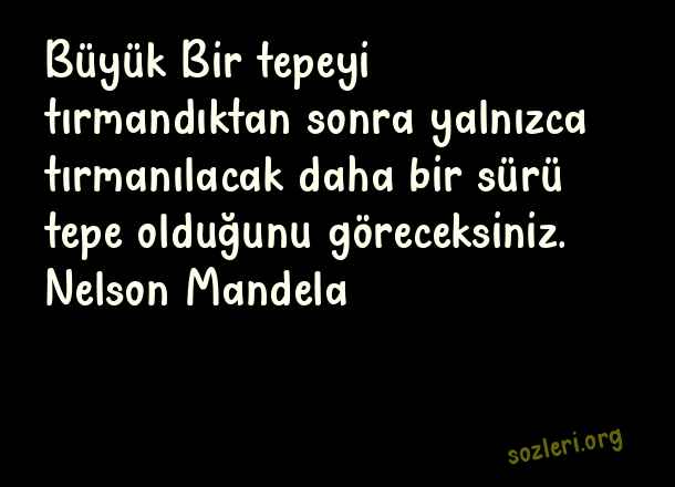 Büyük Bir tepeyi tırmandıktan sonra yalnızca tırmanılacak daha bir sürü tepe olduğunu göreceksiniz. Nelson Mandela ( Zirve )