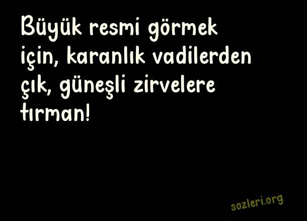 Büyük resmi görmek için, karanlık vadilerden çık, güneşli zirvelere tırman! ( Zirve )