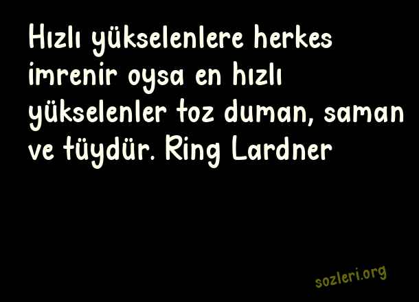 Hızlı yükselenlere herkes imrenir oysa en hızlı yükselenler toz duman, saman ve tüydür. Ring Lardner ( Zirve )