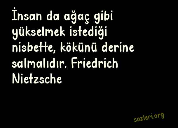 İnsan da ağaç gibi yükselmek istediği nisbette, kökünü derine salmalıdır. Friedrich Nietzsche ( Zirve )