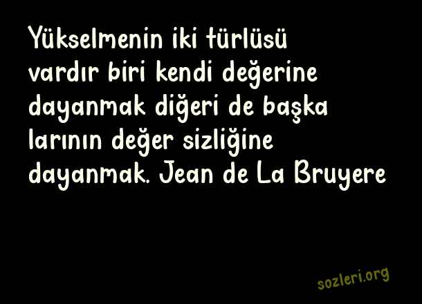 Yükselmenin iki türlüsü vardır biri kendi değerine dayanmak diğeri de başka larının değer sizliğine dayanmak. Jean de La Bruyere ( Zirve )