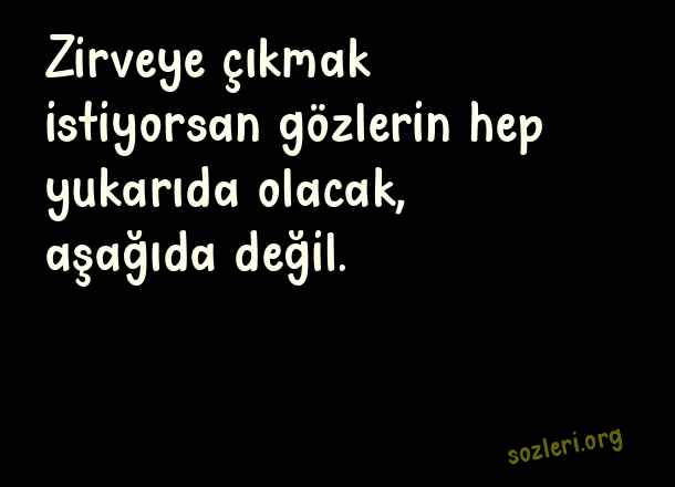 Zirveye çıkmak istiyorsan gözlerin hep yukarıda olacak, aşağıda değil. ( Zirve )