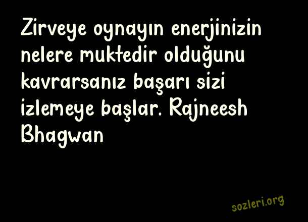 Zirveye oynayın enerjinizin nelere muktedir olduğunu kavrarsanız başarı sizi izlemeye başlar. Rajneesh Bhagwan ( Zirve )