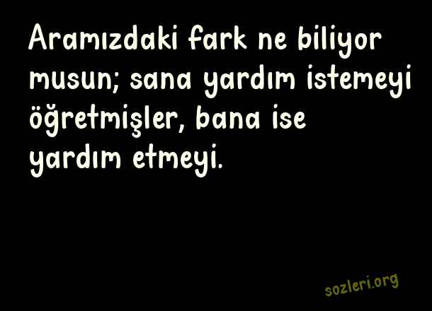 Aramızdaki fark ne biliyor musun; sana yardım istemeyi öğretmişler, bana ise yardım etmeyi. ( Adam Gibi Sözler )