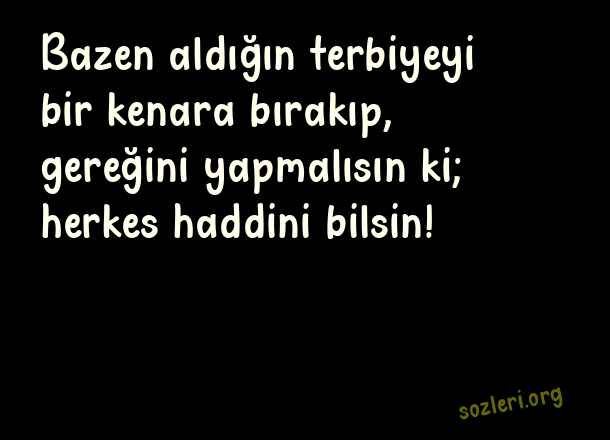 Bazen aldığın terbiyeyi bir kenara bırakıp, gereğini yapmalısın ki; herkes haddini bilsin! ( Adam Gibi Sözler )