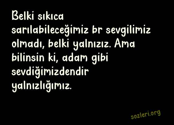 Belki sıkıca sarılabileceğimiz br sevgilimiz olmadı, belki yalnızız. Ama bilinsin ki, adam gibi sevdiğimizdendir yalnızlığımız. ( Adam Gibi Sözler )