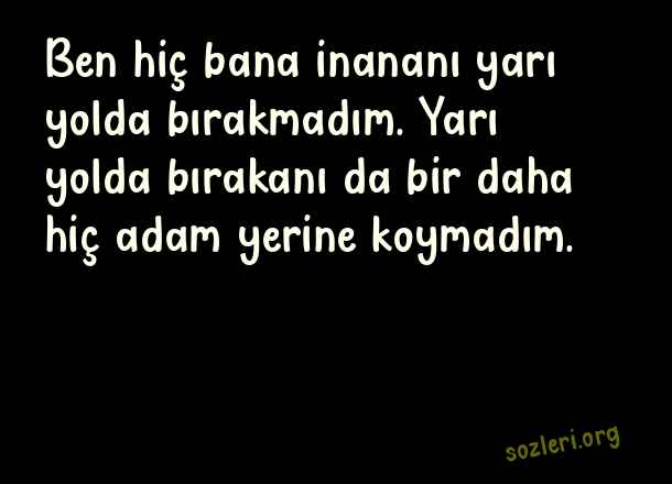Ben hiç bana inananı yarı yolda bırakmadım. Yarı yolda bırakanı da bir daha hiç adam yerine koymadım. ( Adam Gibi Sözler )