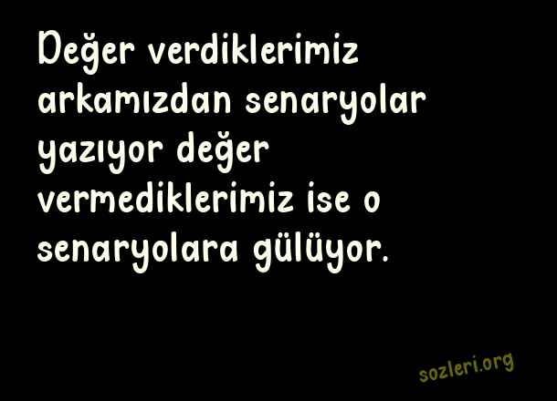Değer verdiklerimiz arkamızdan senaryolar yazıyor değer vermediklerimiz ise o senaryolara gülüyor. ( Adam Gibi Sözler )